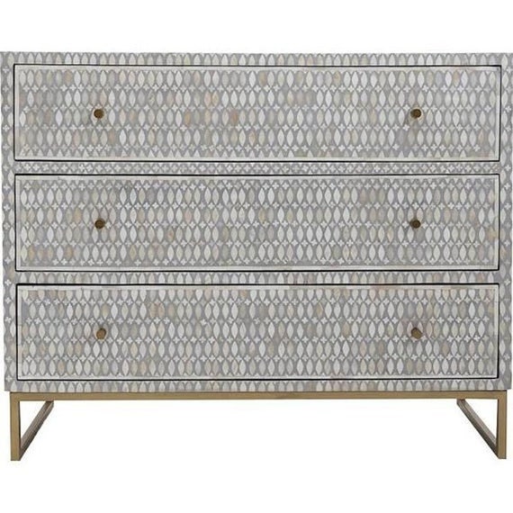 Bone Inlay Chest Of 3 Drawer Gray Bone Inlay Dresser Bone Etsy